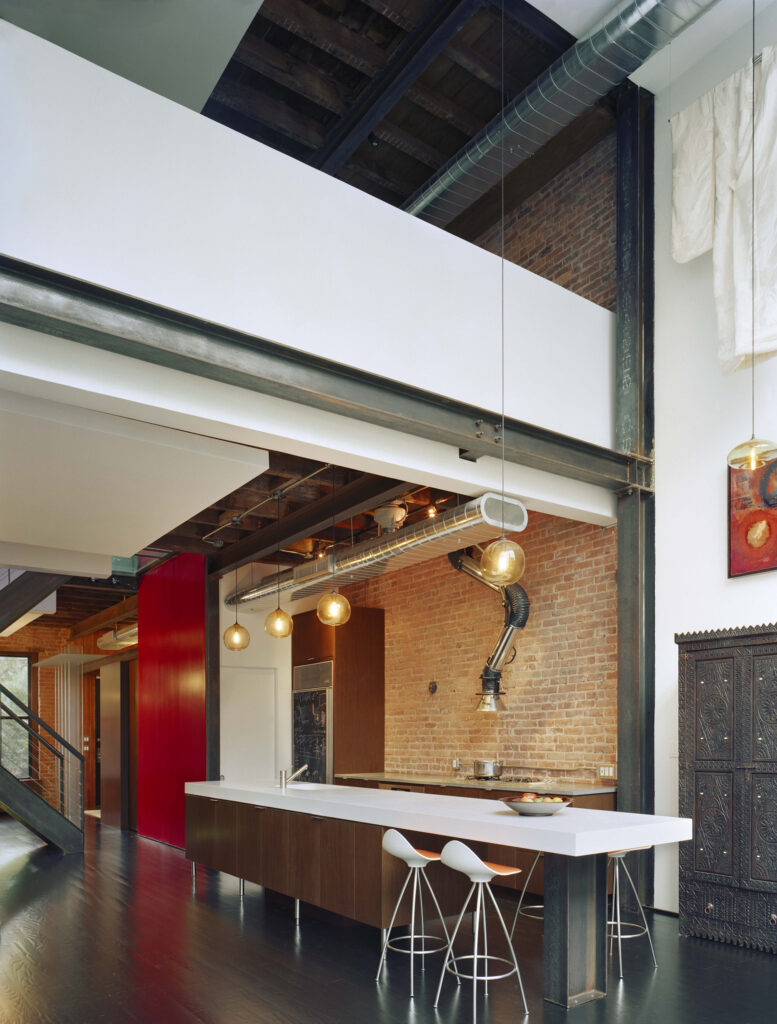 One of the firm’s first Brooklyn projects, this gut renovation of a Carroll Gardens townhouse focused on designing a space to accommodate the needs of the client, a film editor and his family. The design transformed the previously closed off space into a home that felt more like a loft, with few doors, large windows, and points of connection across floors. The architecture and interiors strategy incorporated cinematic and narrative inspiration from books and movies to connect to the owner’s professional background. Originally published in The New York Times, this home was one of many design projects completed with this client, who trusted Young with a mix of private residential and commercial projects.
