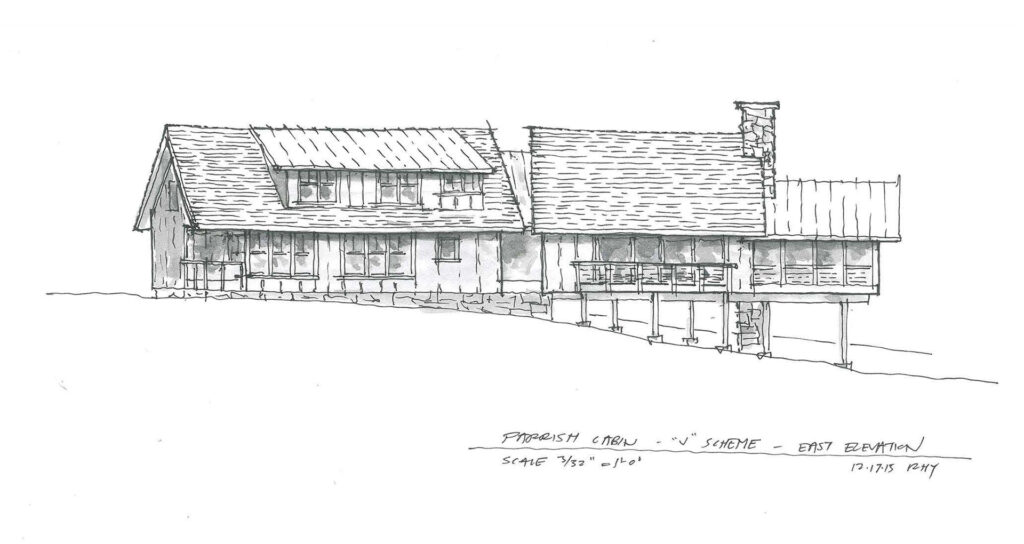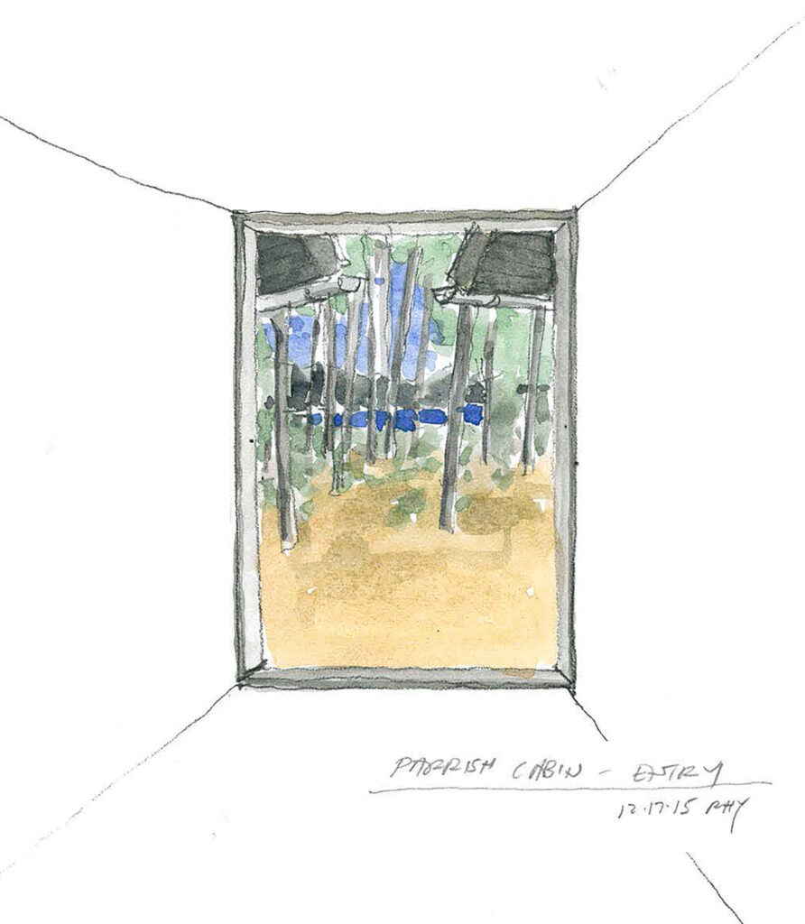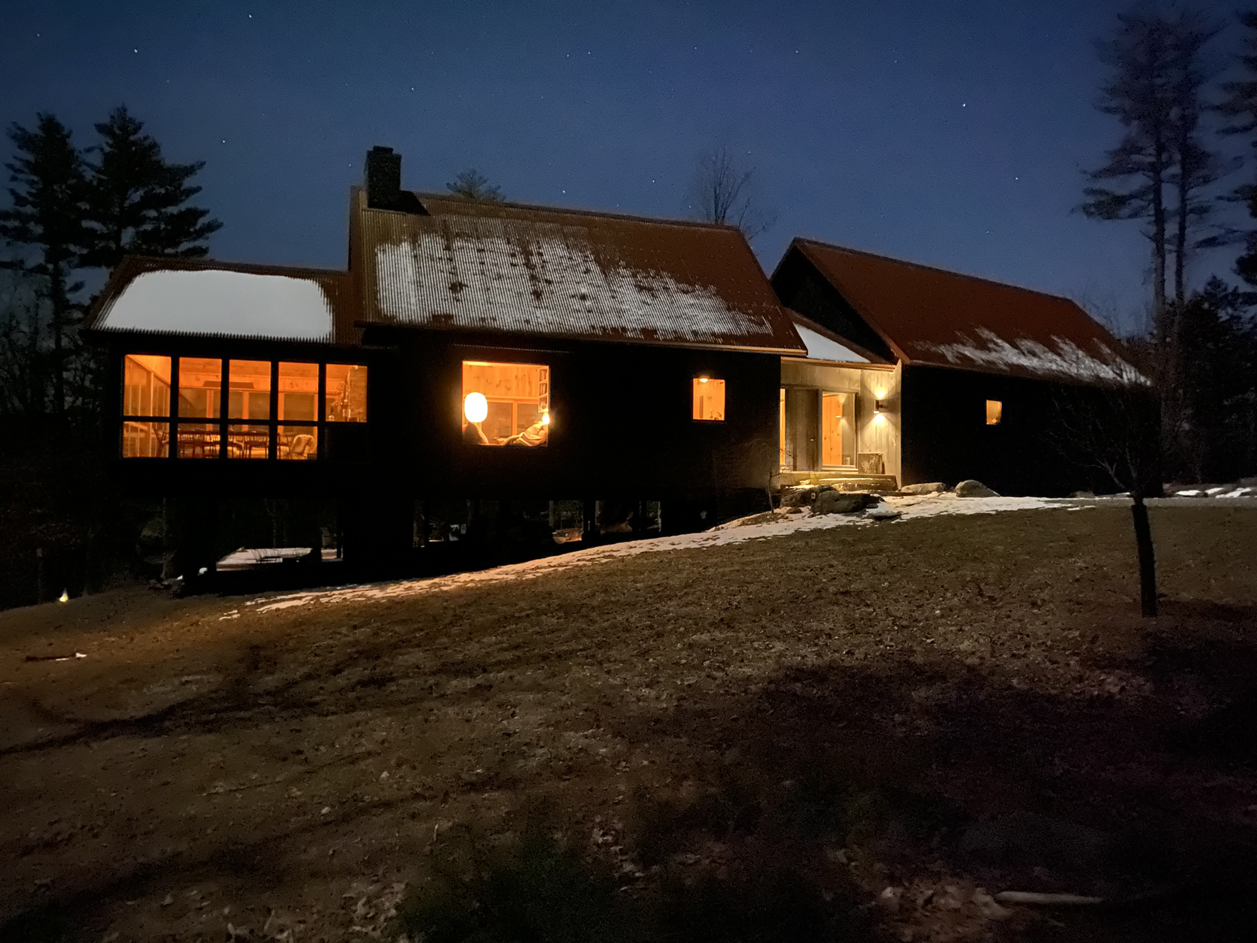 Surrounded by protected land, this cabin in the Catskills was pushed out over a hillside to maximize views. The resultant space — underneath the construction — is designated as a recreation space. The project perches itself within the natural world, and creates a panoramic sensation.