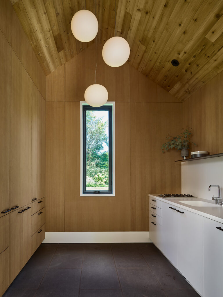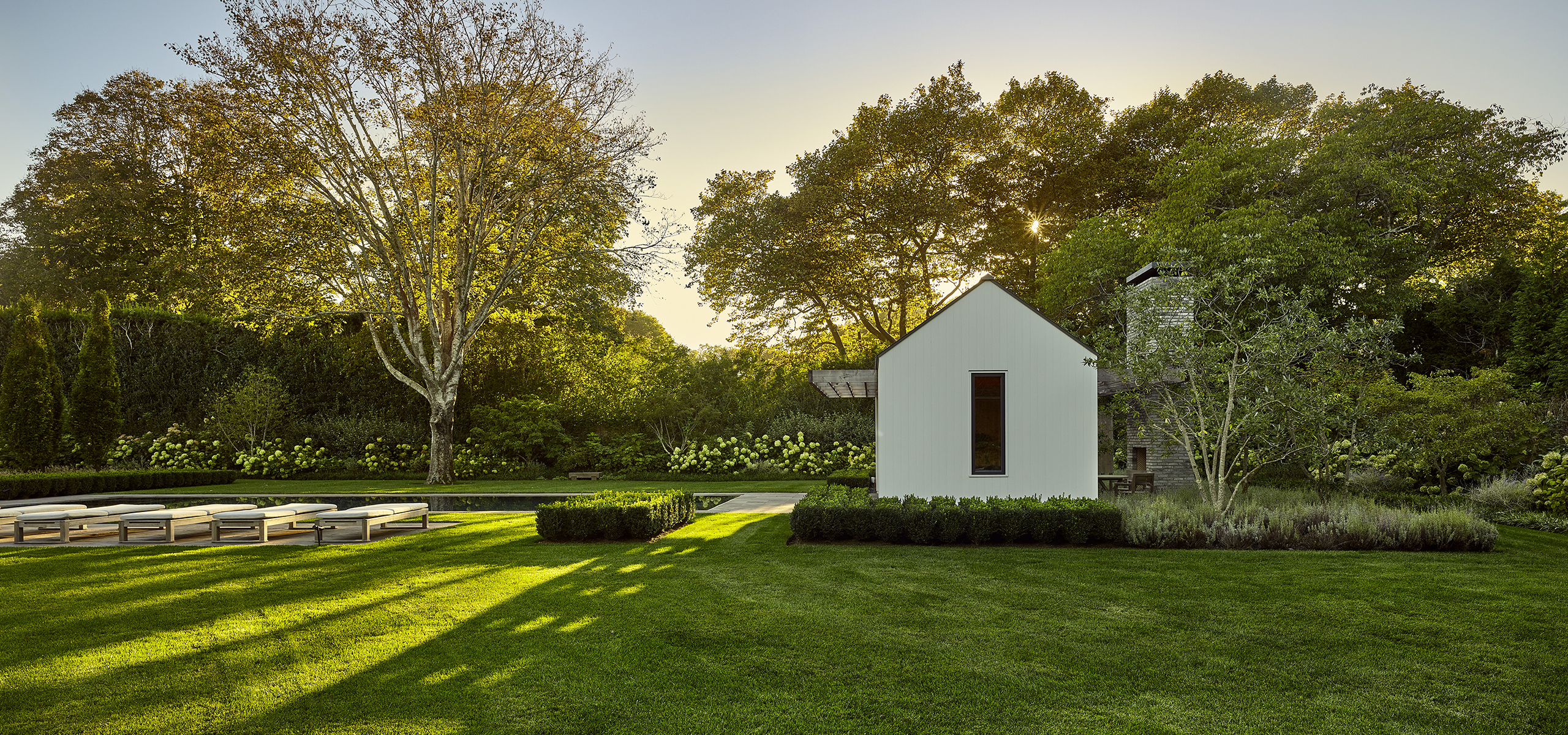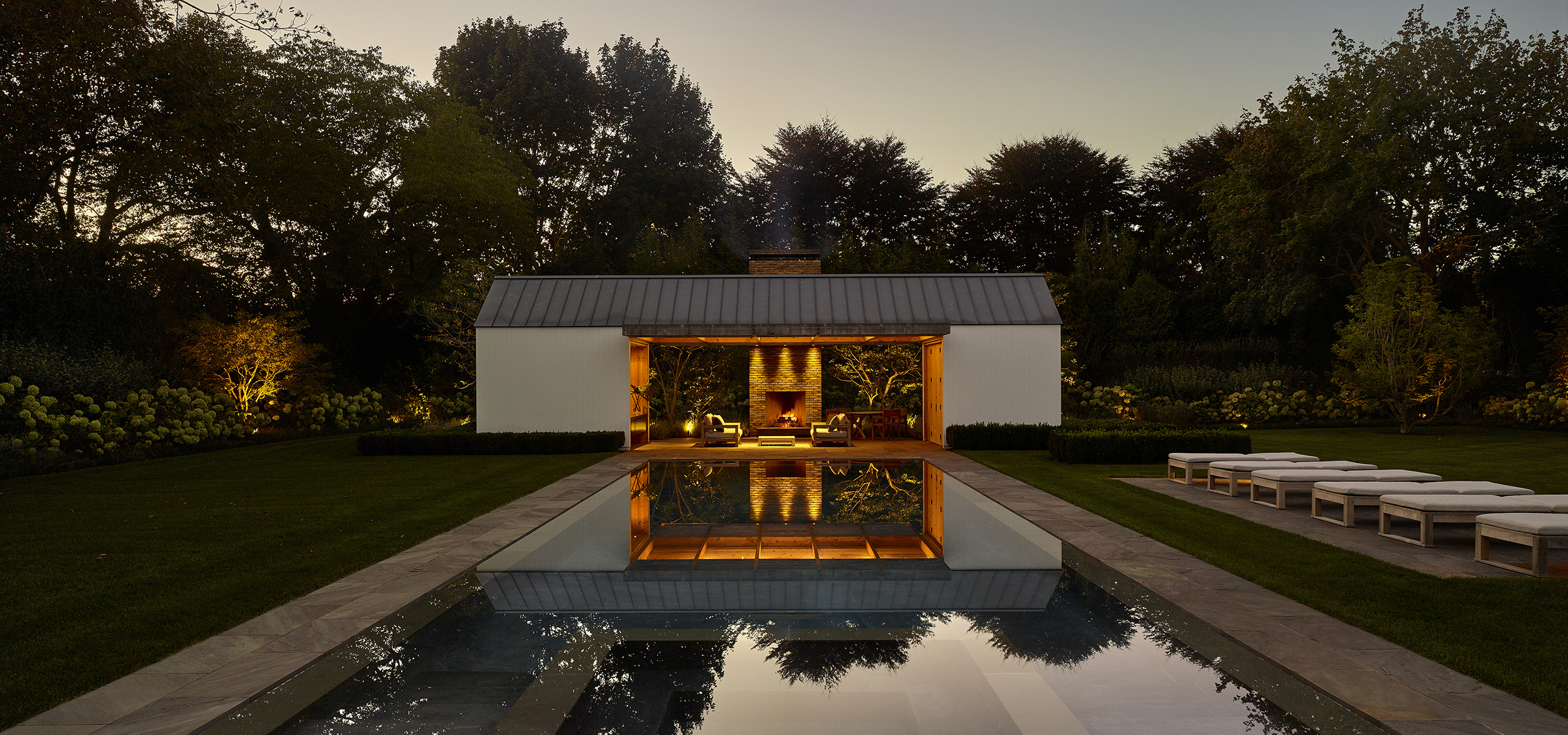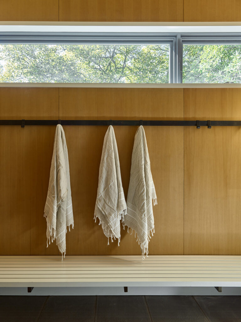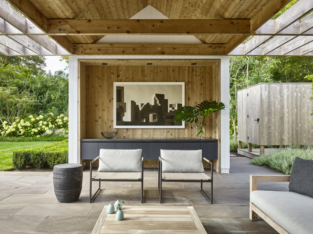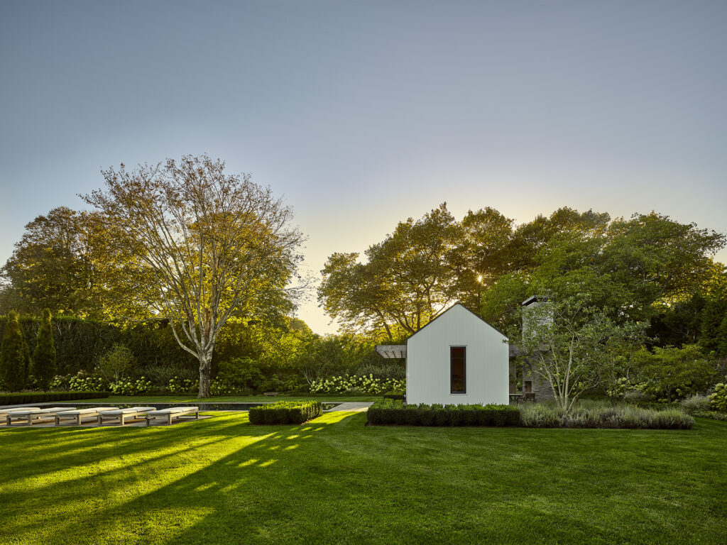 This pool house in Amagansett was designed to maximum variety of experiences within a relatively small set of indoor and outdoor spaces.