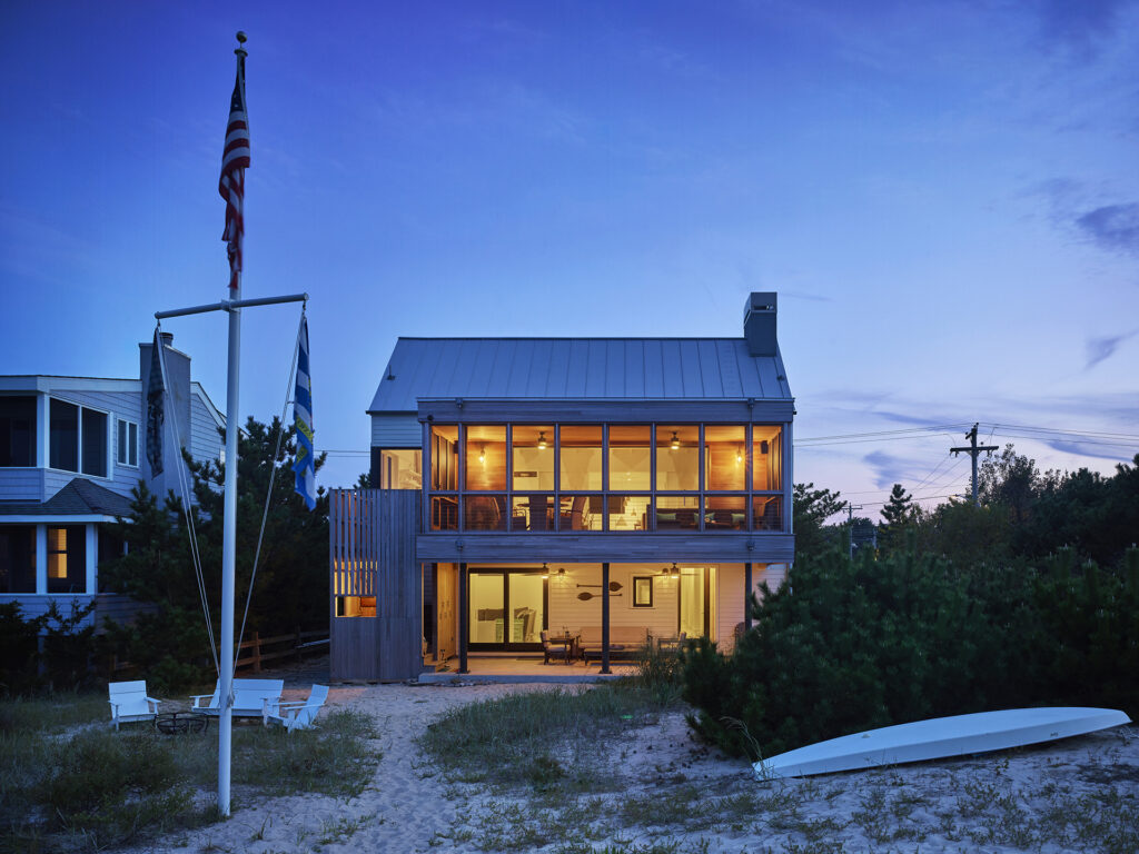 Prioritizing a warm palette of materials and textures that naturally weather with age, the focus of this home in Deleware Beach was to create a space that felt comfortable to inhabit while still having refined design elements. Natural light and views out to the ocean were highlighted through the careful inclusion of large apertures, further emphasizing the connection to this tightly constricted site with homes on both sides.
