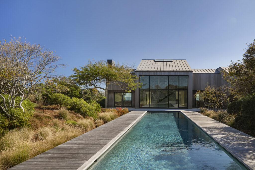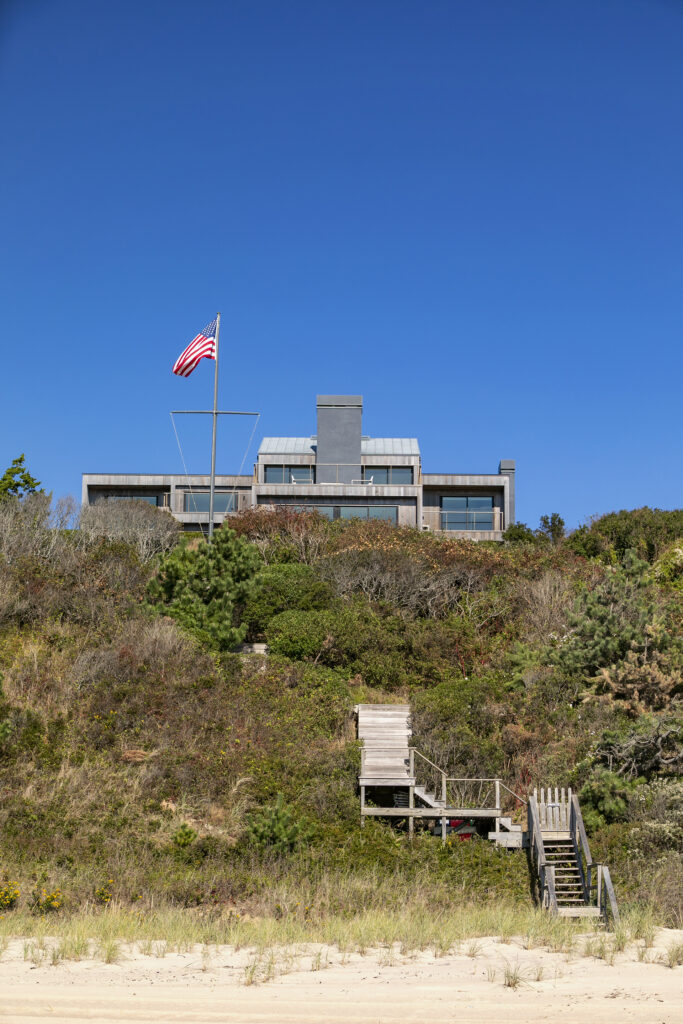 This project focused on creatively renovating and transforming an outdated home that became unsuitable for its beachfront environment into a contemporary home that reflected the landscape that surrounded the property. Working in tandem with landscape architecture firm, LaGuardia Design Group, the resulting intervention created a home that formed a symbiotic relationship with the dunes, ocean, and native plants of the area. Employing a natural material palette for the exterior cladding and decking, the built environment seamlessly connects to the landscaped components of the site. Utilizing the embodied carbon of the existing residence, the design accommodates the existing architecture in more sustainably oriented ways.